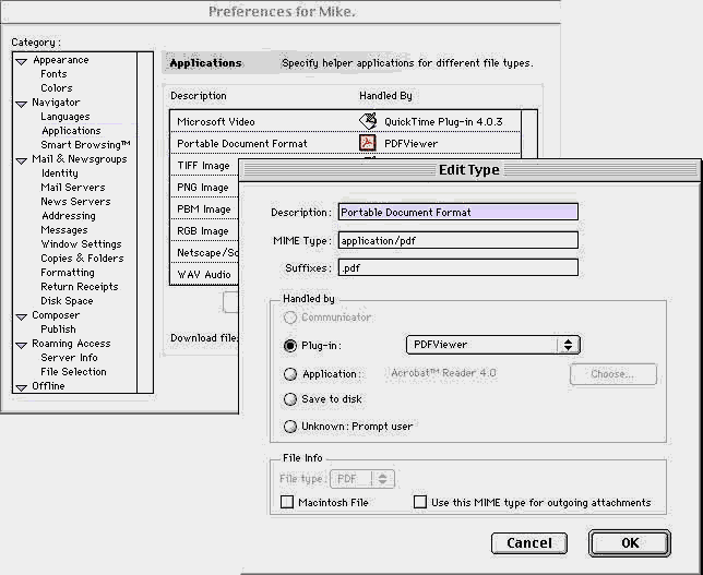 here. There are also some problems with the Adobe Acrobat plug-in and Netscape.